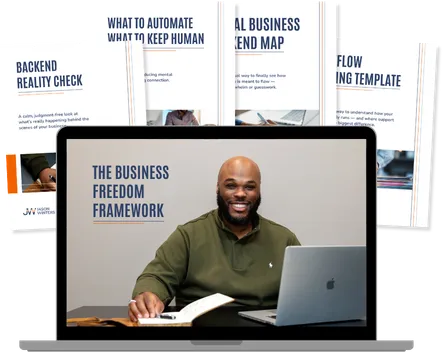 The Business Freedom Framework is a free five-lesson mini-course that gives you the exact structure behind a coaching backend that actually runs — so you can stop holding everything together by willpower and start trusting your business to move without you.