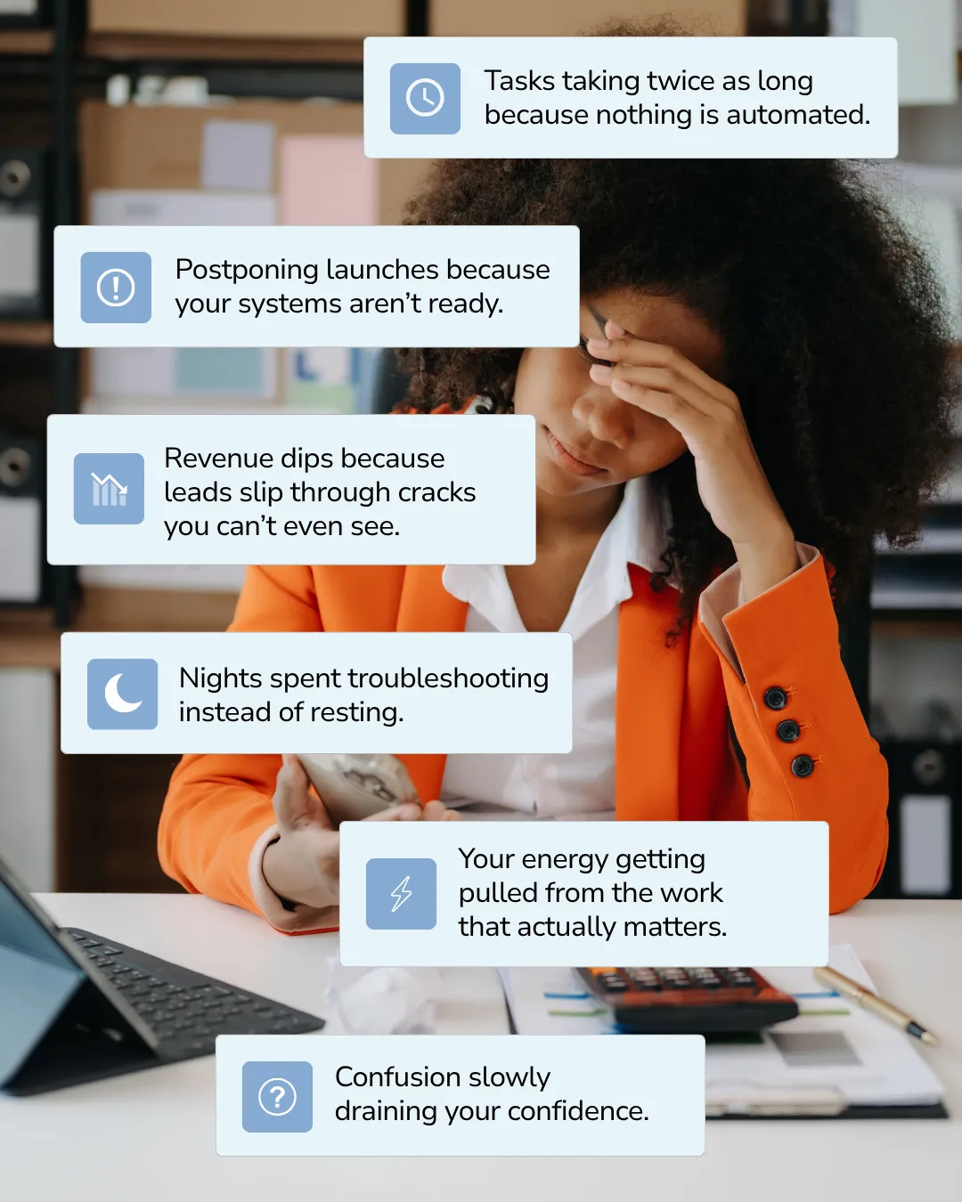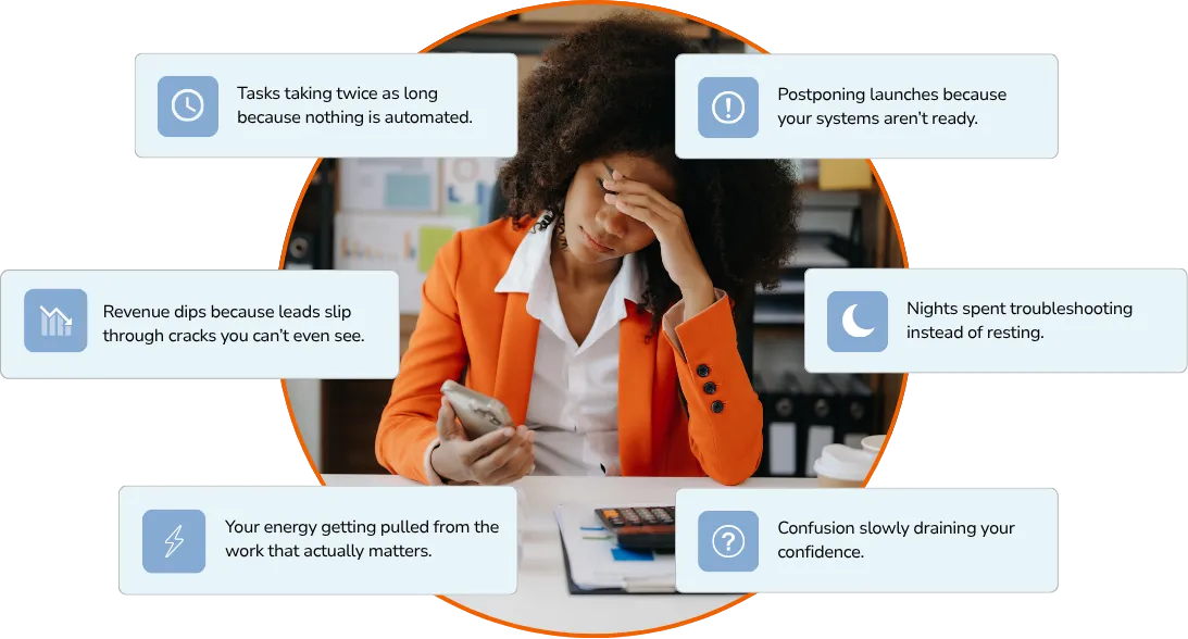 But here you are — bouncing between platforms, manually following up with leads, hoping your onboarding didn't break again, and wondering why something that's supposed to support your business feels like a second job.